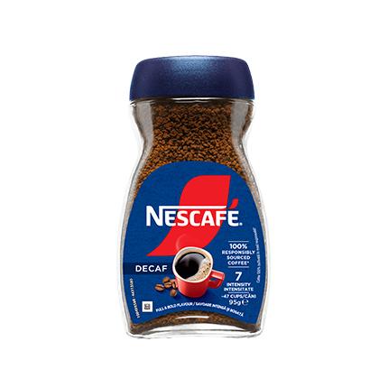 NESCAFÉ® Decaf e безкофеиновата вариация на NESCAFÉ® Classic. За създаването му е използвана технология за извличане на кофеина с вода, която запазва автентичния вкус и аромат на NESCAFÉ® Classic. NESCAFÉ® Decaf ти позволява да се наслаждаваш на приятните кафе моменти по всяко време на деня. NESCAFÉ® Decaf е разтворимо кафе, което се приготвя от екстракцията на подбрани кафе зърна Робуста, експертно изпечени до средно тъмно. Продуктът е в стъклен буркан за 50 чаши ароматно NESCAFÉ®.