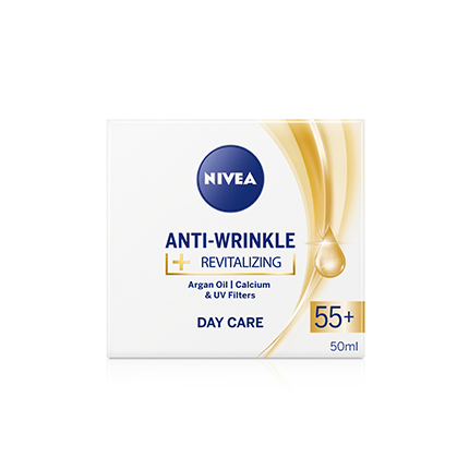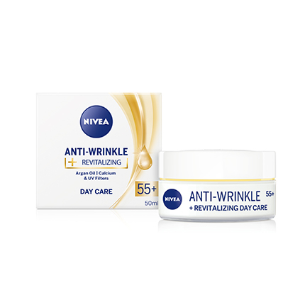 Регенериращ дневен крем против бръчки 55+ от Нивеа е предназначен специално за зряла кожа, с тенденция да губи жизненост и регенеративна способност. Специална формула за нуждите на кожата след 55 години. Предотвратява задълбочаването на съществуващите бръчки и образуването на нови. Стимулира процеса на регенерация на клетките през деня. Защитава от UV-радиация.